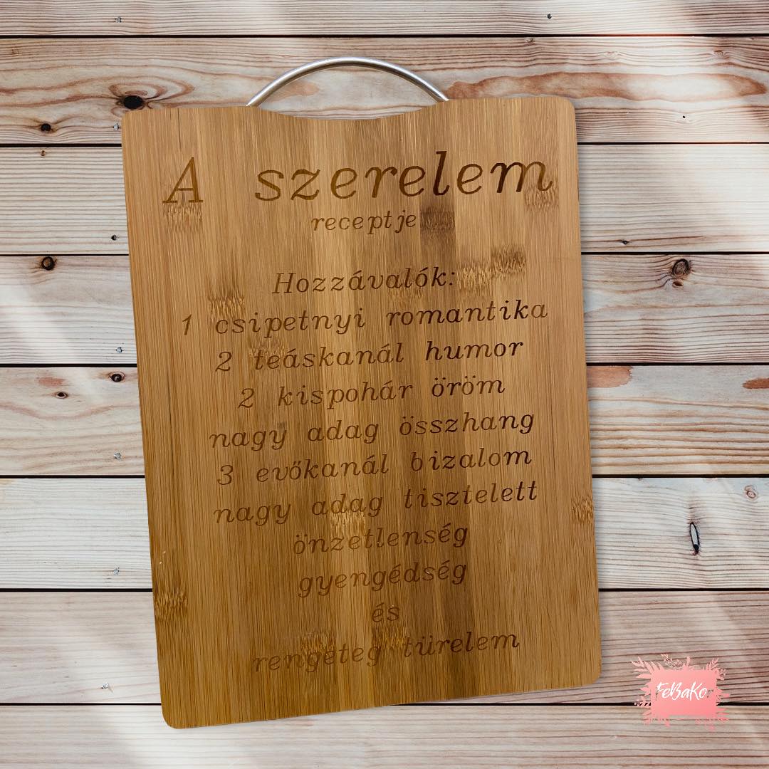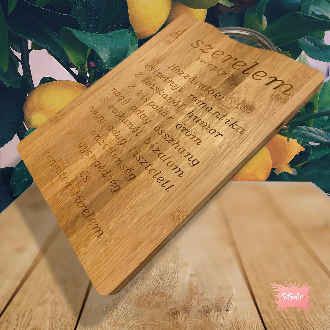 Természetes anyagból készült lézervágott és gravírozott tábla.